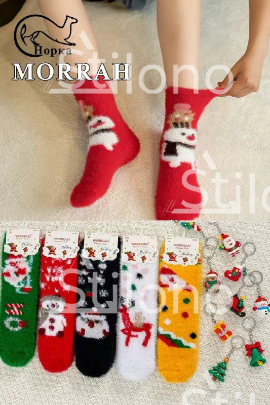 Носки женские с новогодним принтом теплые из шерсти норки